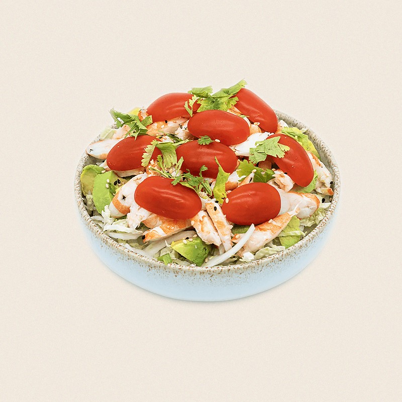 chou chinois, crevettes, coriandre, avocat, tomates cerise