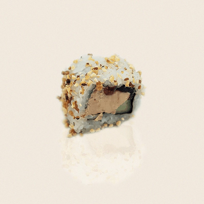 • Le california est un maki roulé à l'envers, saupoudré d'eclat de praliné.