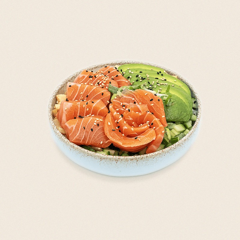 riz vinaigré, saumon, cebette, concombre, avocat, omelette japonaise, sésame, proposé avec sa sauce sucrée salée citronnée