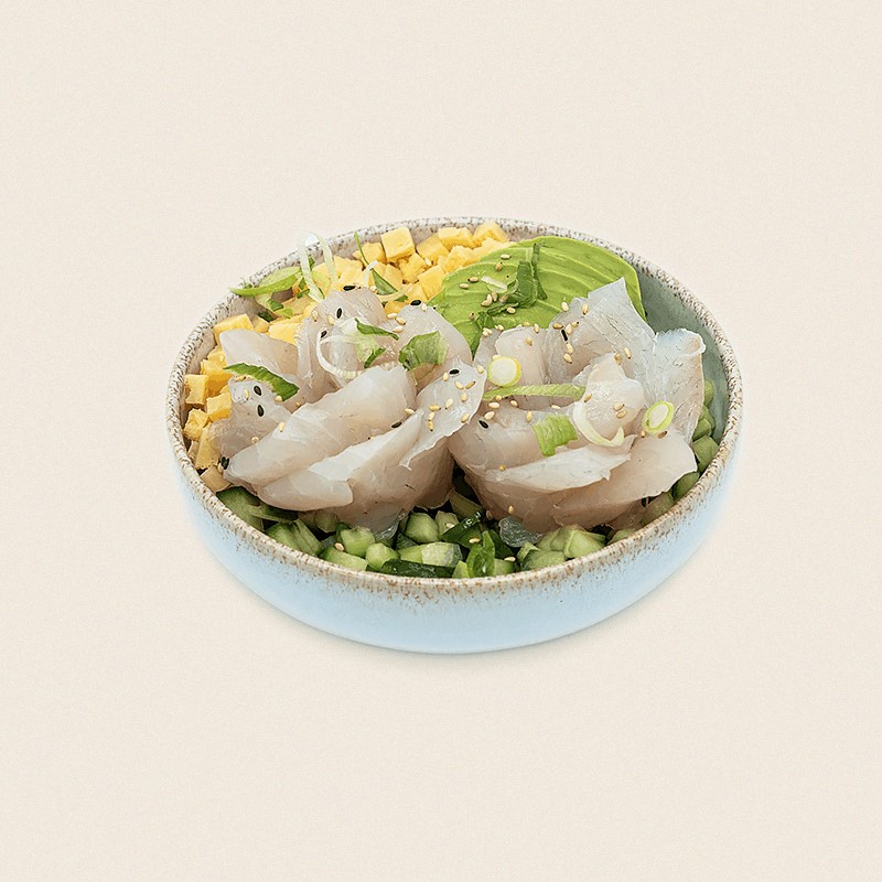 riz vinaigré, dorade royale, cebette, concombre, avocat, omelette japonaise, sésame, proposé avec sa sauce sucrée salée citronnée