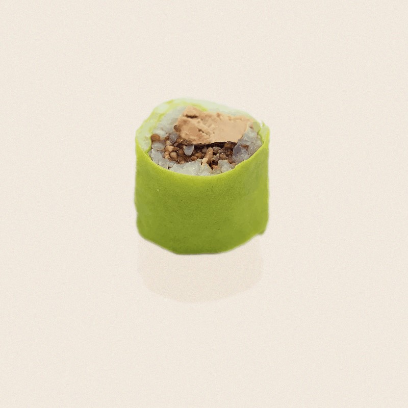 Le maki est traditionnellement roulé dans une feuille d'algue, mais ici nous la remplaçons par une feuille de soja pour ne pas altérer le goût du foie gras