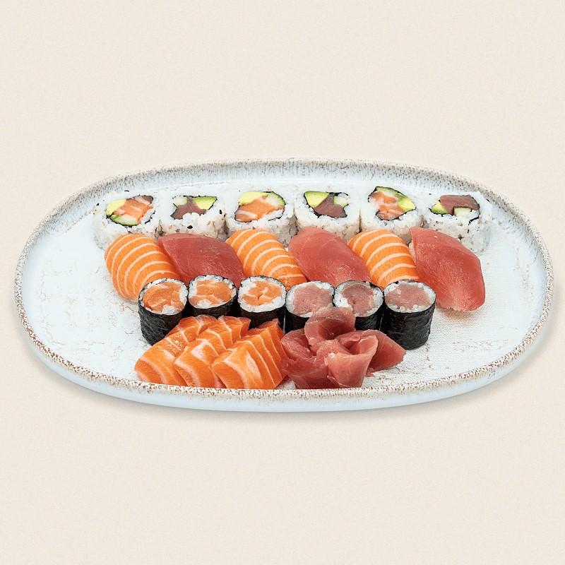 3 sushi saumon, 3 sushi thon, 3 california saumon, 3 california thon, 3 maki saumon, 3 maki thon, 3 sashimi saumon, 3 sashimi thon